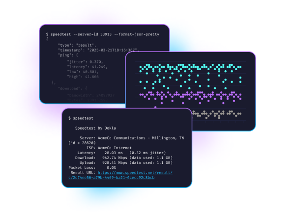 Speedtest CLI trae la tecnología de confianza y la red de servidores globales detrás de Speedtest a la línea de comando.